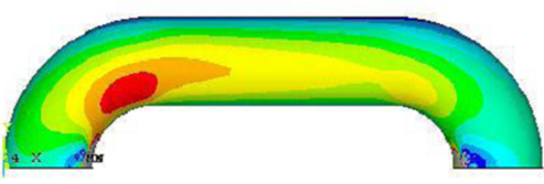 Bottom picture: Shear strain at the rubber close to the nipple end under combined tension and bending. (Courtesy Alfagomma, Ortona, Italy).